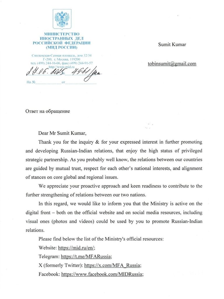Special Thanks To Ministry Of Foreign Affairs Of Russia Federation
